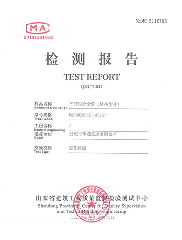 平開鋁合金窗檢測報(bào)告
