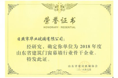 祝賀我公司被山東省建機(jī)協(xié)會確定為“2018年度山東省建筑門窗幕墻行業(yè)骨干企業(yè)”