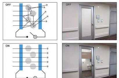 智能調(diào)光玻璃也叫電控調(diào)光玻璃,能夠通過電來控制玻璃的透明度。主要工作原理是在玻璃之間加裝一層液晶調(diào)光膜(PDLC)。